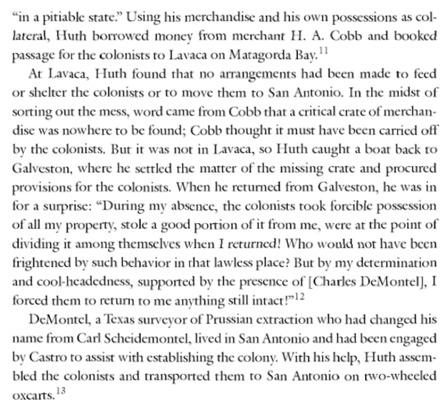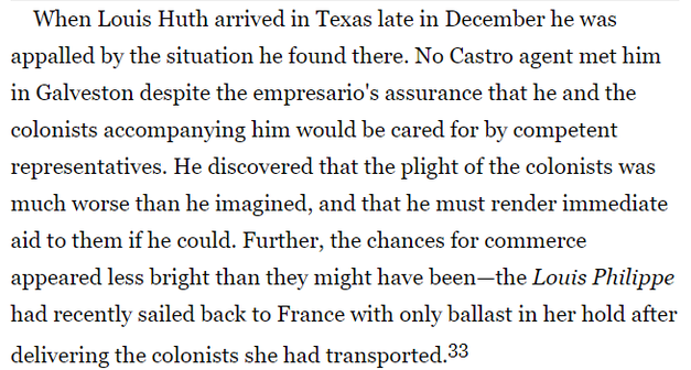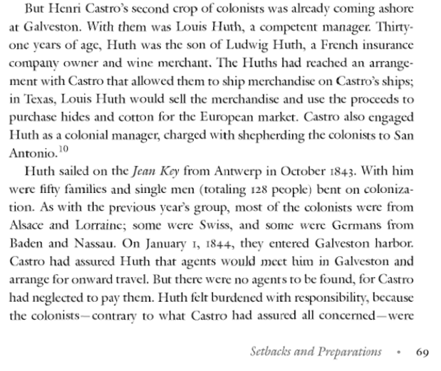 On board the Jean Key was also Louis Huth[2], who provided a record of the lack of support the early Castro colonists received once they arrived on the Texas Coast.