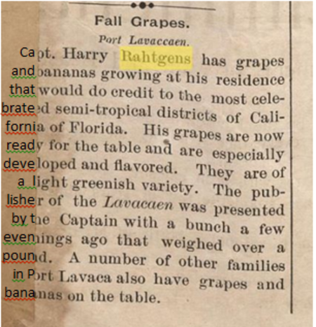 The following article from The Aransas Harbor, November 5, 1891, describes some level of skill with gardening.