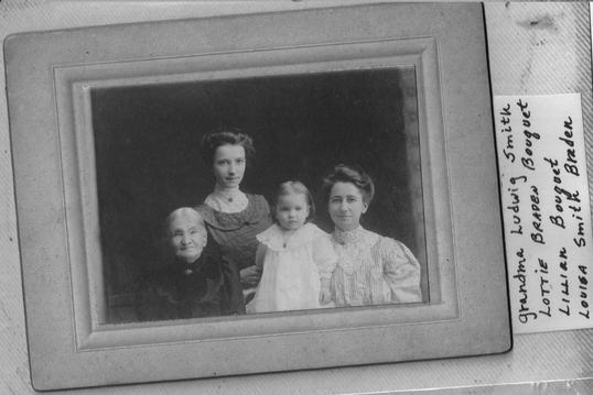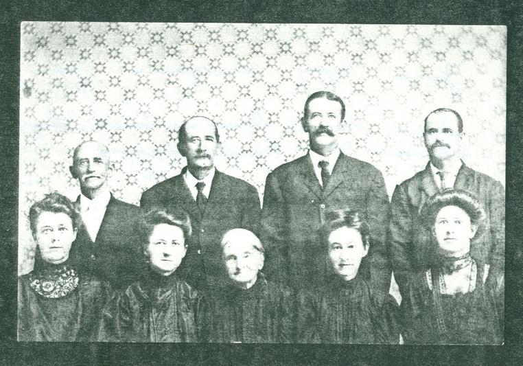 Top Row (LtoR): John Phillip Smith, Christopher Smith, William Henry Smith Sr-"Pappy", James Smith. (Edward Smith not in picture.) Seated (LtoR): Alice Smith, Lizzie Smith, Josephine Ludwig Smith, Louisa Smith Braden, Teresa Smith Rasmussen.