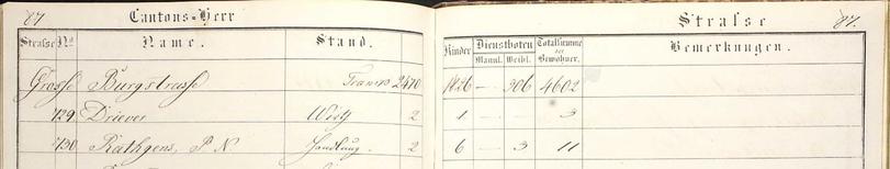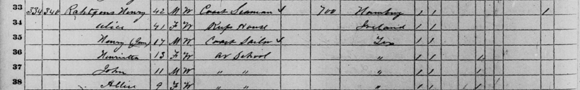 1831 Lubeck Census for P.N. Rathgens, 2 adults, 6 children, 3 women for a total occupancy of 11, residing in the Jakobi Quarter of Lubeck