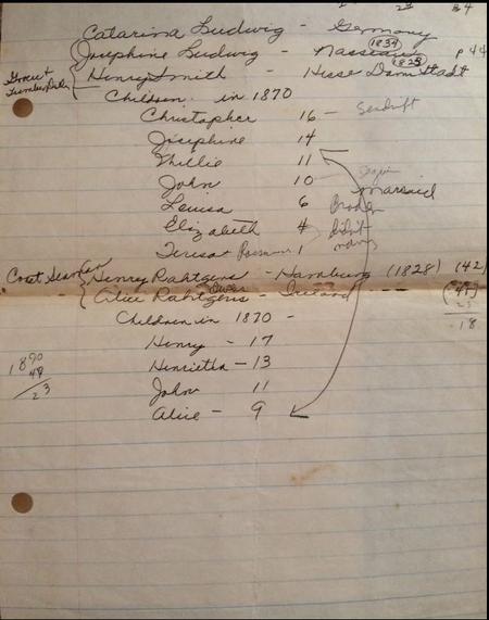 Handwritten Notes of Catherine Anne [nee Smith] Lukefahr, Great grandaughter of Henry and Alice Rahtgens