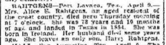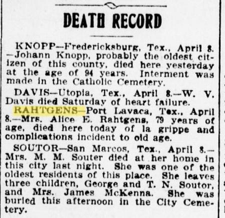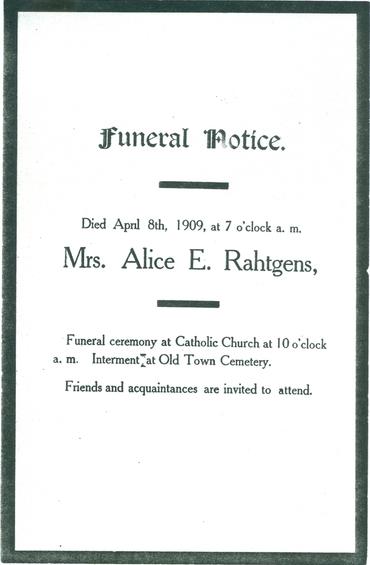 Newspaper Notices of Alice E. Rahtgens Death