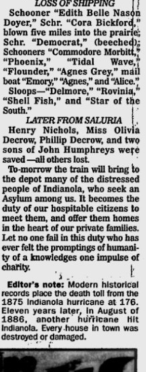 1875 Storm, Indianola Hurricane