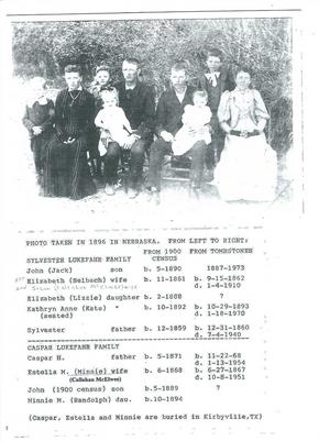 Elizabeth was born on September 15, 1862, in XXX Indiana to parents John and Catherine Selbach. Sylvester was born on December 31, 1860, in Perryville, Missouri to parents Anthony (Anton) and Elizabeth (Asgot) Lukefahr. They were married on April 21, 1881, at St. Libory, Nebraska.